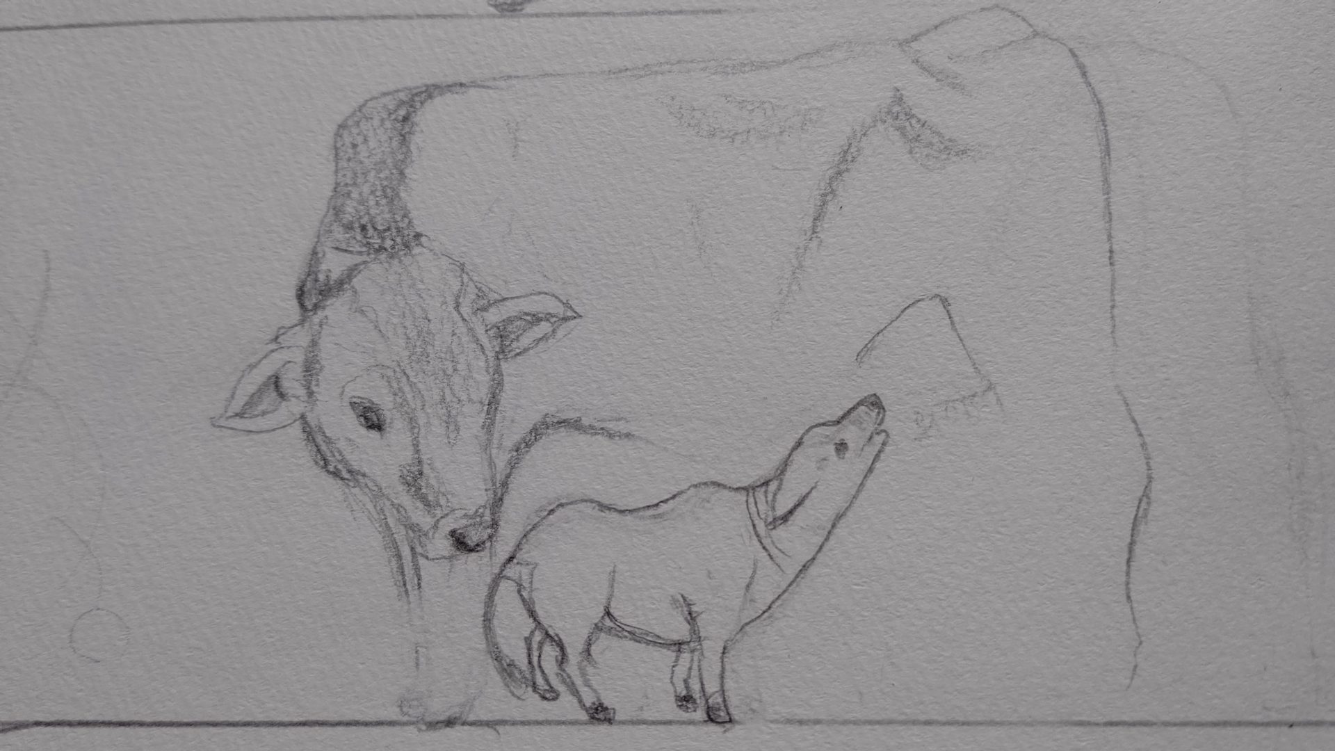 しかし写真がないため下絵の描き方はコチラ( →【十二支の丑】和風にそこそこカッコ良く牛を描くコツをお伝えします! )の牛の描き方を参考にしていただいた方が分かりやすいです。
