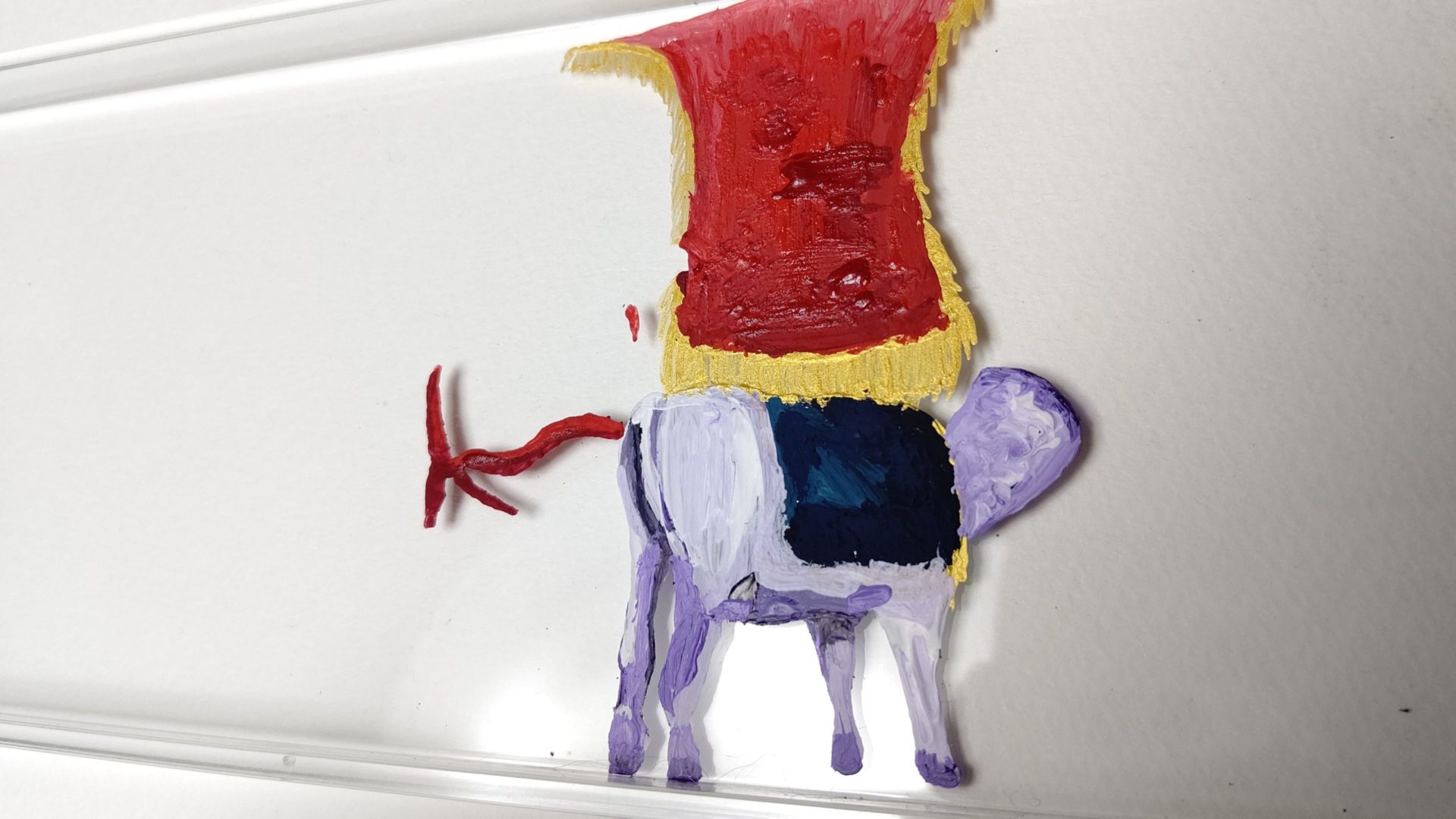 たてがみはターナーアクリルガッシュの場合は白胡粉を毛並みにそって塗って(乾かしてから)別の色を重ねると今回のような仕上がりになります。
