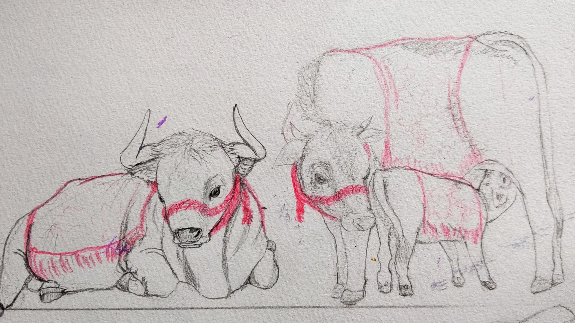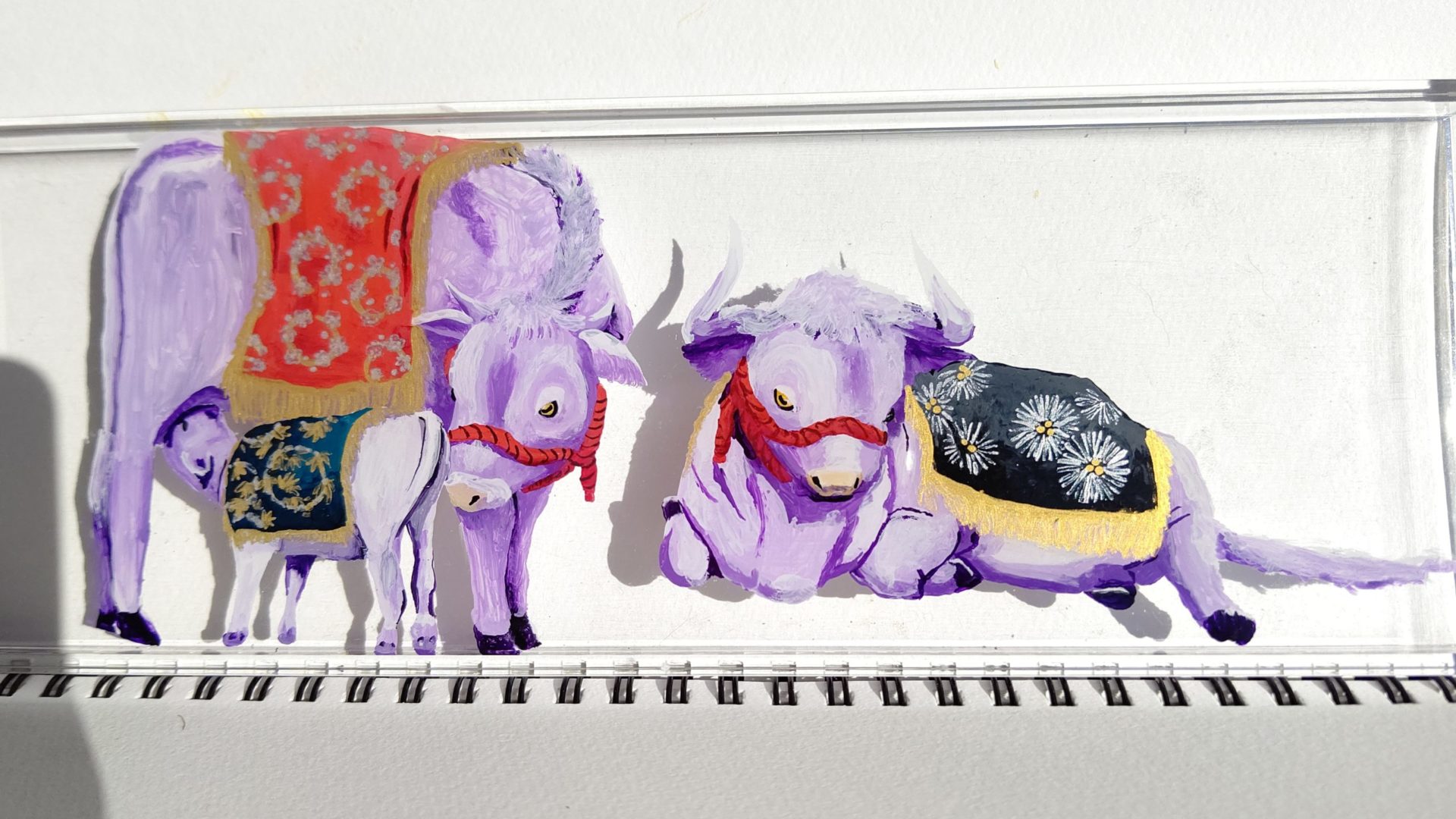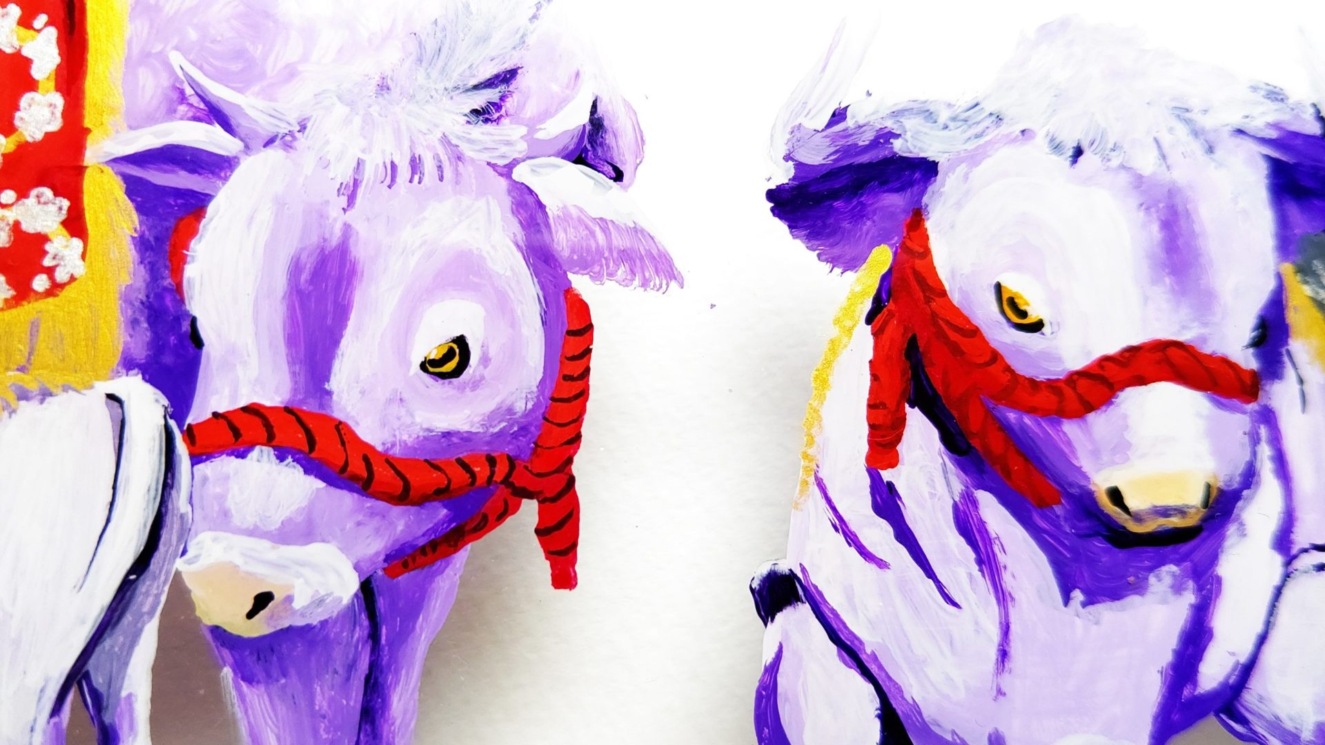 いつか両方とも描いてみたいのですが今回は本来の飾り牛よりも華やかさ控えめな和風な飾り牛をモチーフに描きましたのでその制作過程です。