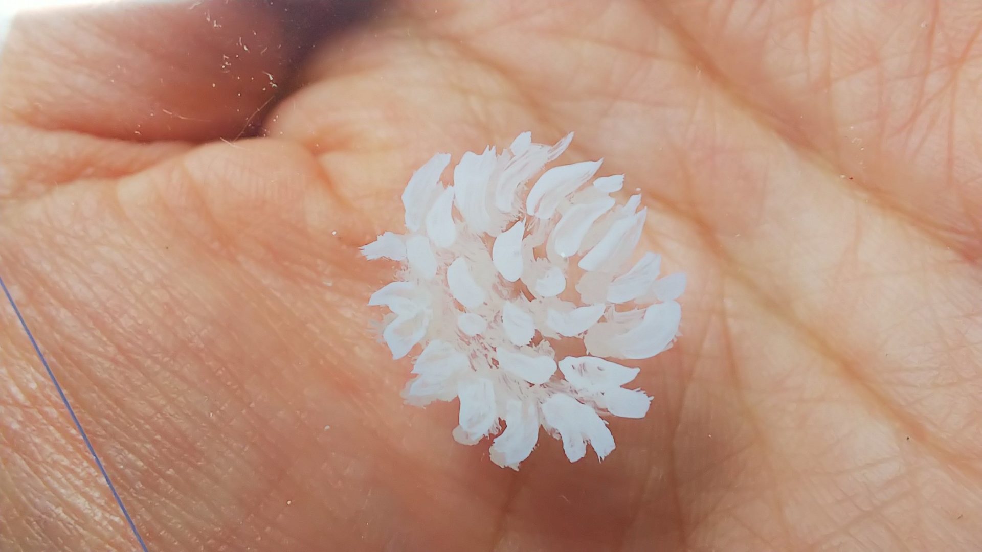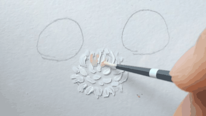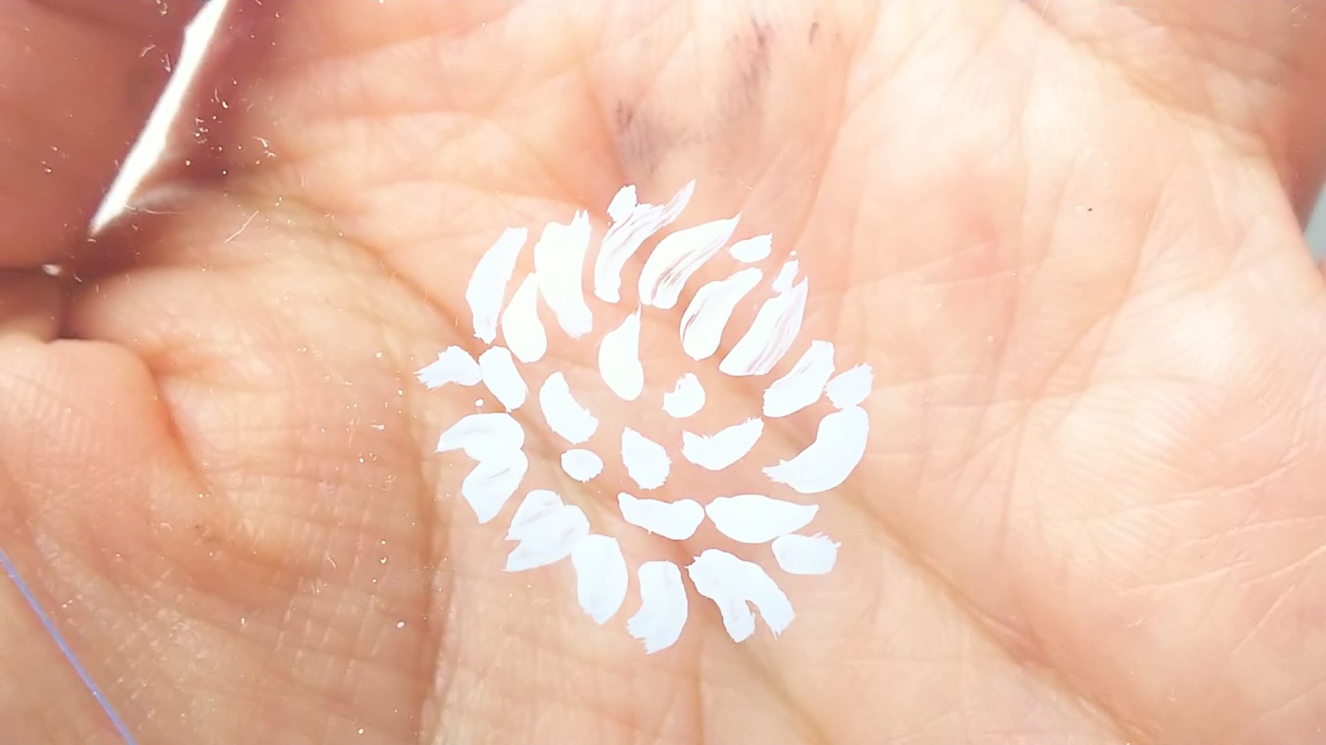 2.下の画像を参考に白の絵の具で花びらを描きます。